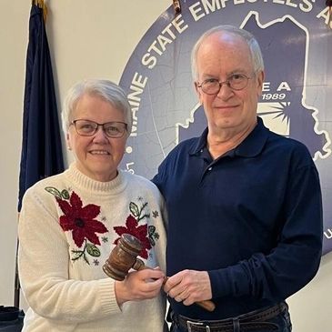Outgoing Area II Retirees of MSEA Chapter President, Steven Butterfield passes the gavel to incoming Chapter President, Irene Lee.